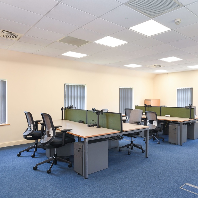 Our office space is fully furnished with large desks, chairs and a large amount of storage units. The space is approximately 23.3ft x 26.1ft giving you a total of approximately 598 square feet!